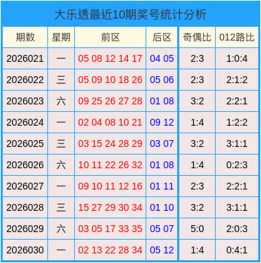 大乐透最近10期分析